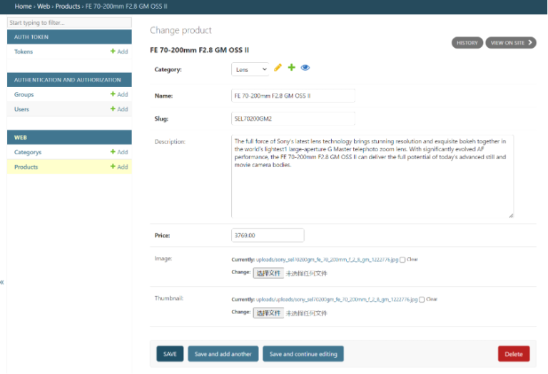 4. 支持分类:能够分类查看Camera和lens等不同大类的产品,并支持缩略图显示